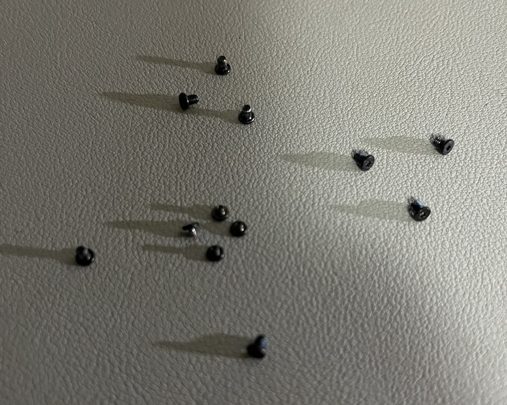 분해를 시작하기 전에, 맥미니 하단에 위치한 나사를 풀어야 합니다. 나사의 종류가 조금 다르므로, 각 나사에 맞는 드라이버를 사용하여 풀어줍니다.